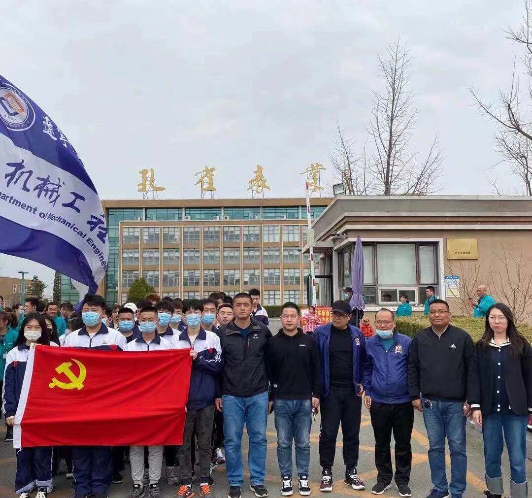 4月10日,机械工程系党总支副书记黄述利、副主任李涛、组织员王昊、教师党支部书记齐孟雷、学生党支部书记王月、辅导员宋承霖共同带领四十余名学生入党积极分子参加了辽宁孔雀表业集团迎春长跑比赛联谊活动。