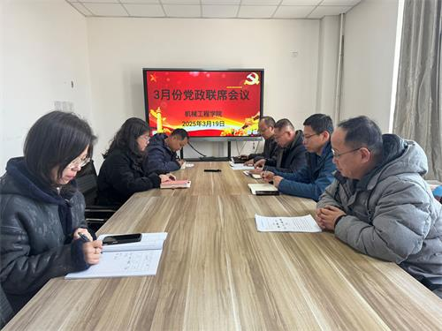 3月19日下午,机械工程学院3月份党政联席会议在A505召开,学院领导班子全体成员参会,民主党派代表列席会议,会议由党总支书记周宇明主持。
