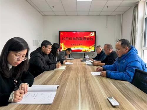 10月29日下午,机械工程学院10月份党政联席会议在A505召开,学院领导班子成员参会,民主党派代表列席会议,会议由党总支书记周宇明主持。