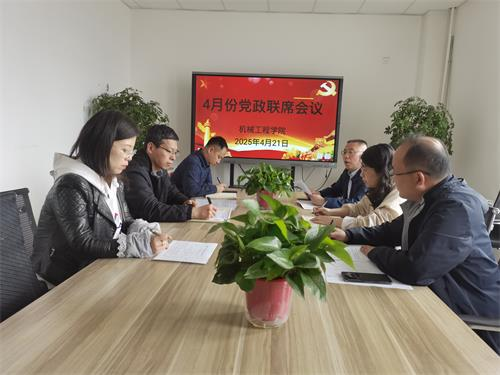 4月21日,机械工程学院4月份党政联席会议在A505召开,学院领导班子全体成员参会,会议由党总支书记周宇明主持。