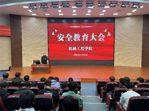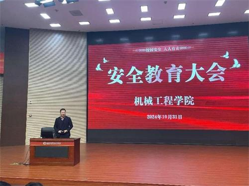 2024年10月31日晚,机械工程学院在四楼报告厅召开安全教育大会。学院党委学生工作部部长、学生处处长孙革发、机械工程学院党总支书记周宇明、机械工程学院党总支副书记齐孟雷、辅导员、班导师和2024级全体同学参加了大会。会议由机械工程学院辅导员钟维明主持。