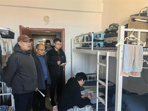 12月2日,机械工程学院党总支副书记齐孟雷带领全体辅导员深入学生社区开展安全隐患排查,全力保障学生住宿安全。