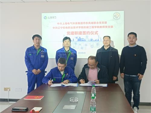4月8日下午,机械工程学院党总支书记周宇明、副书记齐孟雷,以及学生党支部书记宋承霖一行,应邀前往上海电气集团(丹东)环保科技有限公司,共同举办党建联建签约仪式。